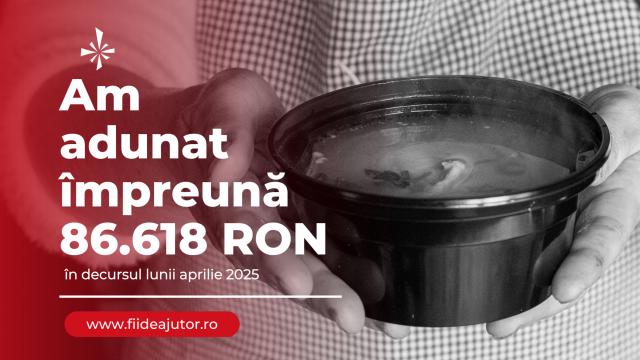 Prin bunătatea voastră, am reușit să adunăm, în luna 𝐚𝐩𝐫𝐢𝐥𝐢𝐞 𝟐𝟎𝟐𝟓, suma de 𝟖𝟔.𝟔𝟏𝟖 𝐑𝐎𝐍: