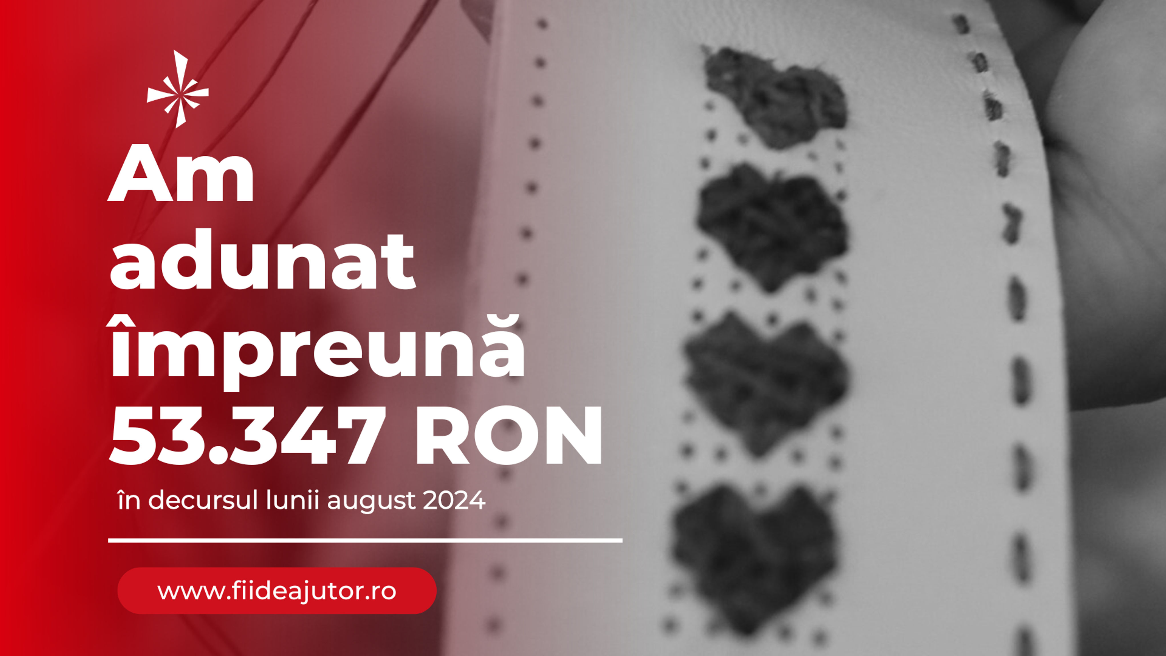 Astfel, prin bunătatea voastră, am reușit să adunăm în luna august 2024 suma de 53.347 RON: