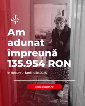 Prin bunătatea voastră, am reușit să adunăm, în luna 𝐢𝐮𝐥𝐢𝐞 𝟐𝟎𝟐𝟓, suma de 𝟏𝟑𝟓.𝟗𝟓𝟒 𝐑𝐎𝐍:
