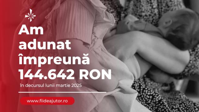 Prin bunătatea voastră, am reușit să adunăm, în luna 𝐦𝐚𝐫𝐭𝐢𝐞 𝟐𝟎𝟐𝟓, suma de 𝟏𝟒𝟒.𝟔𝟒𝟐 𝐑𝐎𝐍: