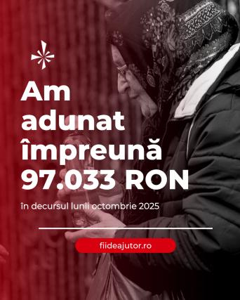 Prin bunătatea voastră, am reușit să adunăm, în luna 𝐎𝐜𝐭𝐨𝐦𝐛𝐫𝐢𝐞 𝟐𝟎𝟐𝟓, suma de 𝟗𝟕.𝟎𝟑𝟑 𝐑𝐎𝐍: