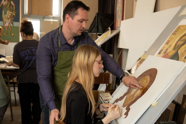 Și în această ediție, publicul este invitat să descopere și să liciteze lucrări realizate de studenții specializării Artă Sacră din cadrul Facultății de Teologie Ortodoxă „Dumitru Stăniloae” din Iași, tineri care învață să îmbine rigoarea canonică, sensibilitatea artistică și bucuria lucrării cu sens.