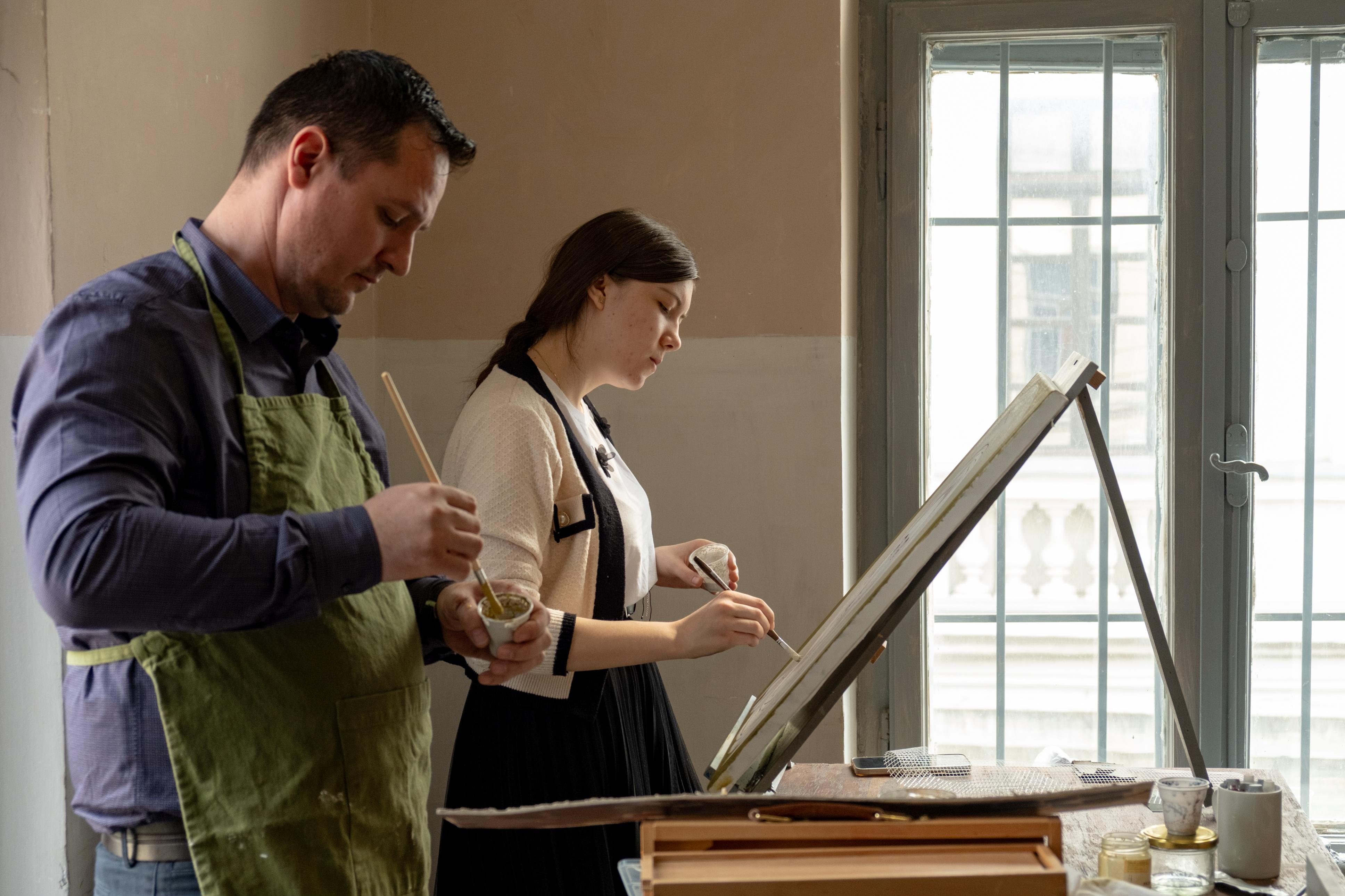 În atelierul de Artă Sacră al Facultății de Teologie Ortodoxă „Dumitru Stăniloae” din Iași, culorile nu sunt doar pigmenți, iar liniile nu sunt doar compoziții. Totul începe dintr-o stare, dintr-o pregătire a inimii și dintr-un mod de a privi lumea. Acolo, într-o liniște aproape monahală, studenți care vor deveni iconari, pictori bisericești, restauratori sau profesori își caută vocația, ghidați de profesori care le transmit dincolo de tehnică, și o rânduială interioară.