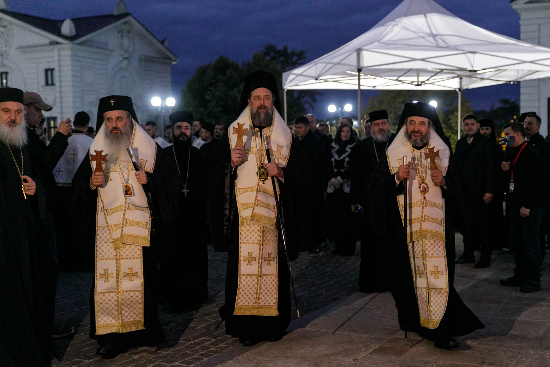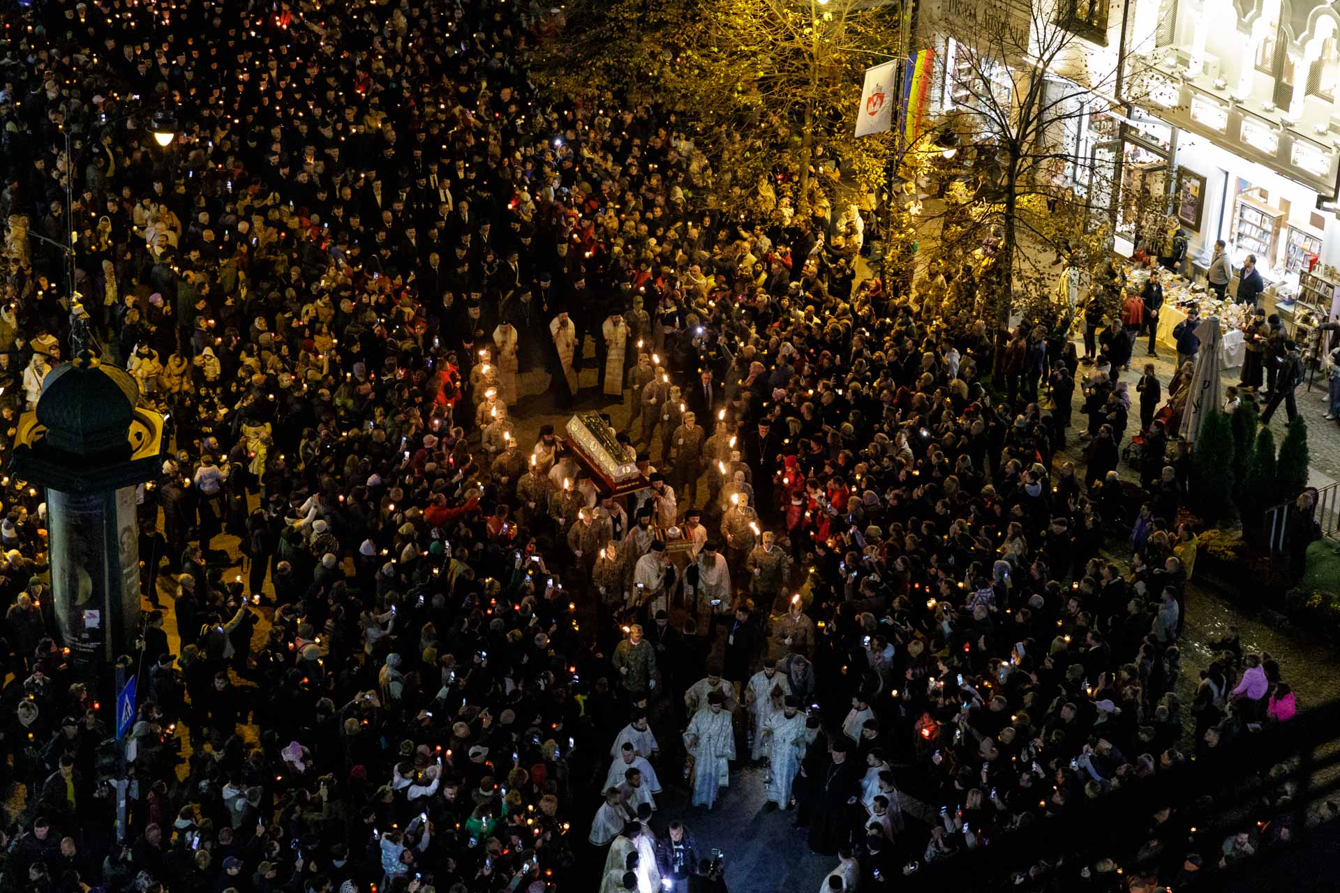 Câtă emoție! Inimă lângă inimă sunt oamenii – și inimile lor bat în ritmul clopotului care anunță plecarea. Sfânta Parascheva, alături de Sfântul Grigorie Palama din Tesalonic – oaspetele din acest an al Hramului – sunt luați din baldachin și purtați pe umeri. Cu cinste. Ce cinste! Ce mai cinste să devii purtător de sfinte moaște! Poporul întreg pare că ia raclele pe umeri. Sau, mai bine spus, poporul întreg se aciuează sub racle. Sub aripa de sfințenie a celor doi Ocrotitori.