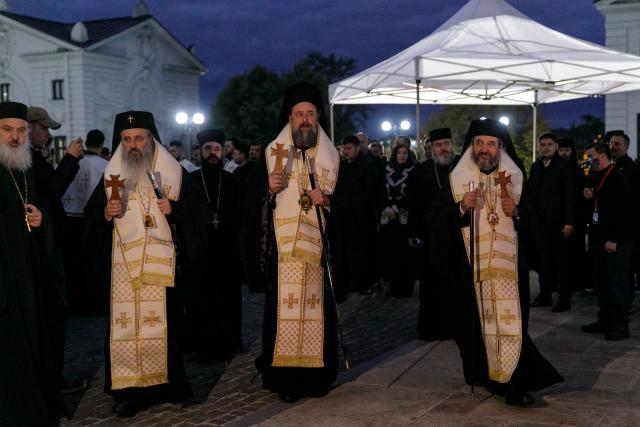 Săvârșitu-s-a! O nouă procesiune pe Calea Sfinților s-a încheiat, iar raclele Cuvioasei și ale Sfântului Grigorie sunt aduse, din nou, în baldachin. În curând, se va relua închinarea la sfintele moaște. Pelerinajul continuă. Hramul e în toi. Ziua de 14 octombrie se apropie.