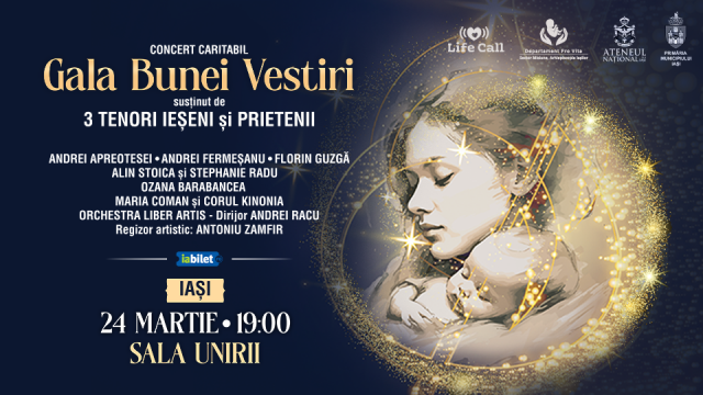 Biletele au fost puse în vânzare pe https://www.iabilet.ro/bilete-iasi-gala-bunei-vestiri-concert-caritabil-prima-editie-108171/